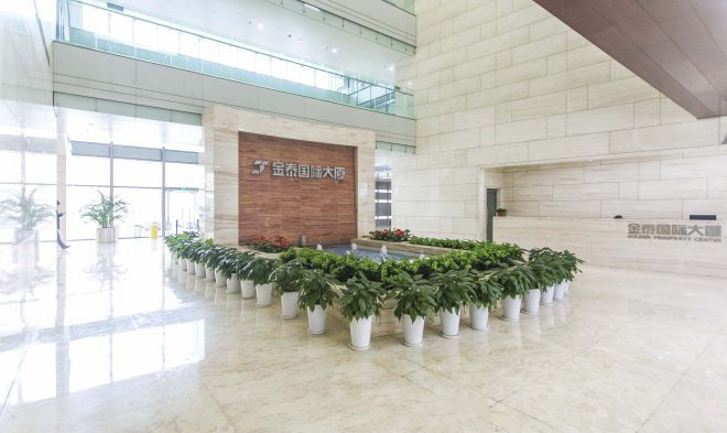 金泰国际大厦总建筑面积51,000平米,地上十五层,地下二层。地下两层规划有248席车位。首层商业设施规划有银行、展厅、中型快餐、咖啡厅、眼镜店、邮局、便利店等,员工餐厅位于地下一层。地上二层至地上十五层为办公层,单层面积约3,300-3,700平米。金泰国际大厦北侧为独栋办公楼,总建筑面积为2,434平米,地上三层,层高4.8米, 大落地窗设计,可从楼上俯视800平米精致水景,独立中央空调系统,电梯可直达地下车库,是追求低密度、静谧、独立办公之首选。 二、设计特点:写字楼大堂面积约800平米,挑高20米,装饰以意大利进口浅黄色洞石,极显奢华品质,大堂采用地板采暖方式,各入口处设置有电热风幕,提高大厦冬日的舒适度。金泰国际大厦五层以上至顶层南侧为“阳光中庭”,高透光拉索玻璃幕墙将柔和阳光纳入楼内,增加自然采光,倡导健康办公。10部日立品牌高速大容量豪华商务电梯,轿箱净高达2.8米,为租户提供高效、舒适的纵向交通服务。写字楼层走道宽达1.8米,墙面为高档壁纸装饰,地面为高档地毯;每层配备有男女洗手间各两套,TOTO品牌洁具,地面铺以石材,内部空间宽阔、设施充足。写字间层高3.9米,乃甲级写字楼层高之上限,净高可达2.7米,提高了办公的舒适度;双层中空LOW-E单元式玻璃幕墙,大落地窗设计,增强采光效果,节省能源消耗,减少有害射线辐射;8.4米×9.0米的大跨距柱网结构,既可以满足租户大开间办公之需求,也可以提供从100平米至整层约3,700平米的灵活面积选择;100伏安/平米的电量设计,远高于甲级写字楼60伏安/平米标准,于细节处体现高端楼宇品质。美国霍尼韦尔楼宇监控系统、美国江森楼宇控制系统为大厦安全、稳定的运转提供了坚实保障。